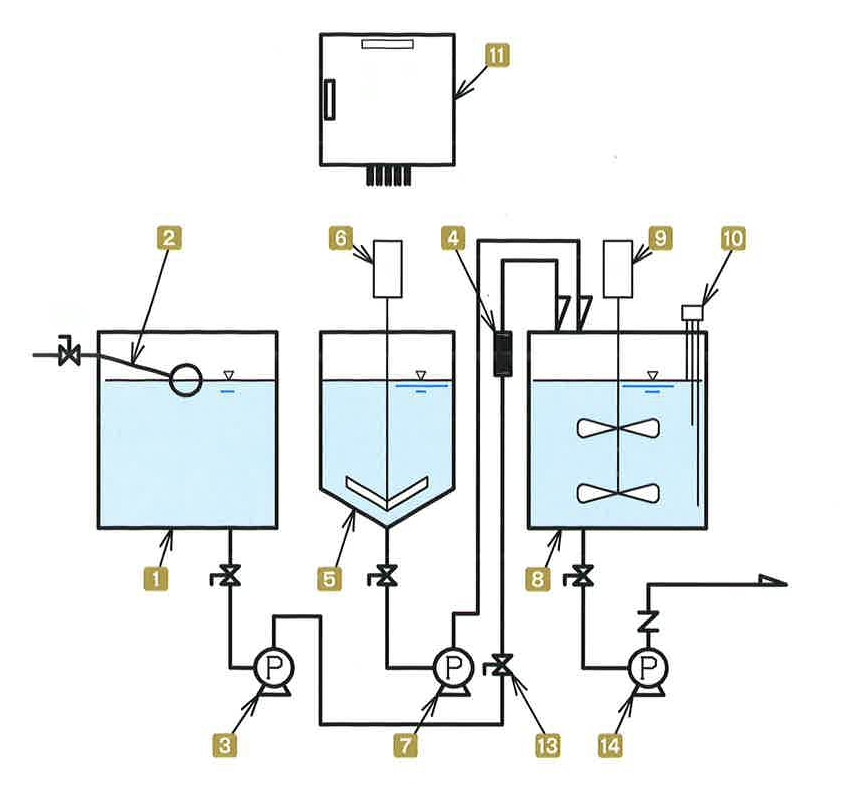 高分子凝集剤を原液タンクに補充しておけば、面倒な軽量や溶解作業をすべて自動で行い、常に一定濃度の溶解液が得られます。